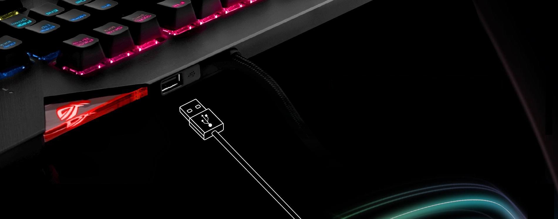 Trên bàn phím sẽ được trang bị thêm một cổng USB cho phép bạn kết nối thuận tiện chuột chơi game, tai nghe hoặc các thiết bị khác.