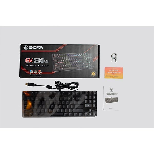 E-DRA EK389 V2 sử dụng switch Outemu (phiên bản không hotswap) với độ bền và độ ổn định cao. Switch Outemu cho chất lượng phím bấm tốt, tuy chưa được như Huano nhưng đổi lại chiếc bàn phím cơ này có mức giá tốt hơn.